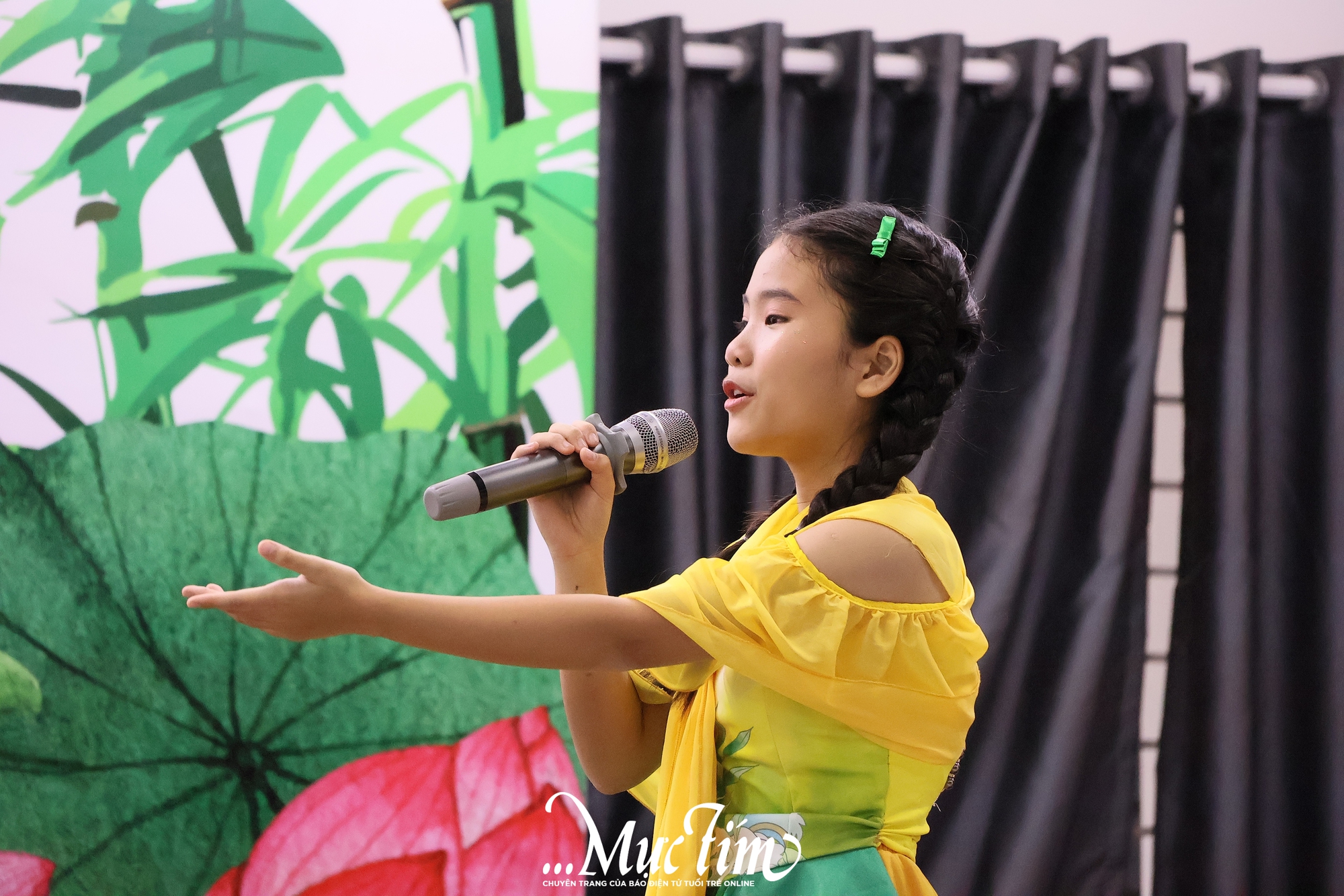 Hà Thư (lớp 7A3) đại diện học sinh phát biểu cảm ơn thầy cô giáo tại chương trình – Ảnh: THẢO NGỌC