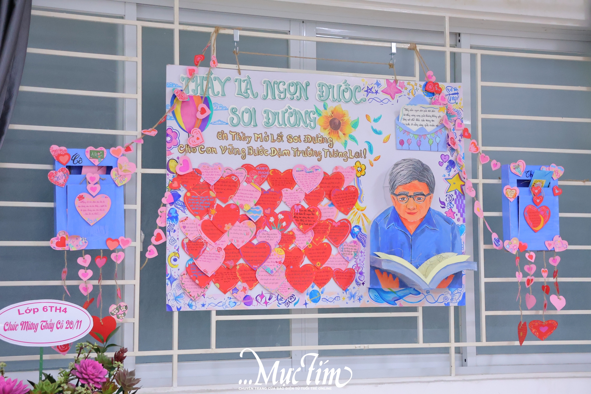 Phần thi Góc nhỏ tri ân của lớp 6TH4 thì được đặt ở khung cửa sổ gần với bàn của giáo viên. Là người theo sát và đồng hình cùng học sinh trong quá trình các bạn trang trí góc lớp, thầy Trần Văn An cho biết lớp mong muốn rằng khi thầy cô ngồi tại bàn sẽ nhìn thấy những lời chúc mà lớp tự viết ra. Từ đó thầy cô sẽ cảm nhận sự trân quý mà các bạn dành cho thầy cô.