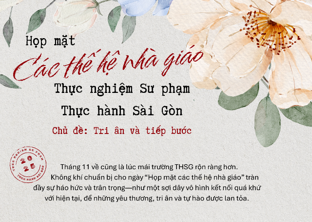 Nguồn: https://muctim.tuoitre.vn/ruc-ro-nhung-bong-hoa-tri-an-20-11-tren-nguc-ao-cua-thay-co-truong-trung-hoc-thuc-hanh-sai-gon-101251117210948792.htm Hình ảnh bông hoa tri ân xuất hiện xuyên suốt trong những lời ca tiếng hát, điệu múa và hoạt động tặng hoa cài áo chính là những lời chúc đầy tình cảm mà học trò Trường Trung học Thực hành Sài Gòn gửi đến thầy cô. Những bông hoa tri ân được học […]